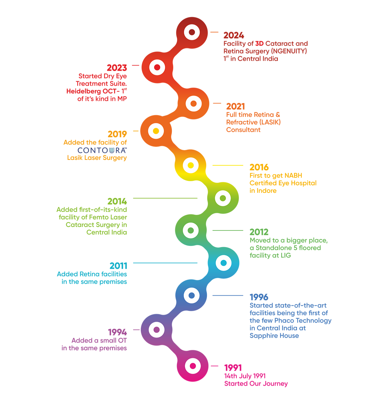 Rohit Eye Hospital & Child Care Centre is the enterprise of Dr. O.P. Agrawal & Dr. Vidhya Agrawal. Established in 1991, Rohit Eye Hospital has emerged as one of the best and most reputed eye care center in Central India. Our facility is centrally located in the city and is the first to receive NABH (National Accreditation Board for Hospitals & Healthcare Providers) certification in Indore and second as SHCO (Small Healthcare Organisation) in Madhya Pradesh and First Eye Hospital To get the full NABH accreditation under Eye Care Organization (ECO) category in 2021.