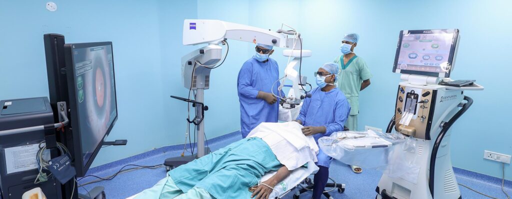 Implanting a traditional or monofocal lens in both eyes: This gives the patient the best corrected distance vision. The patient will require reading glasses after surgery for near work.